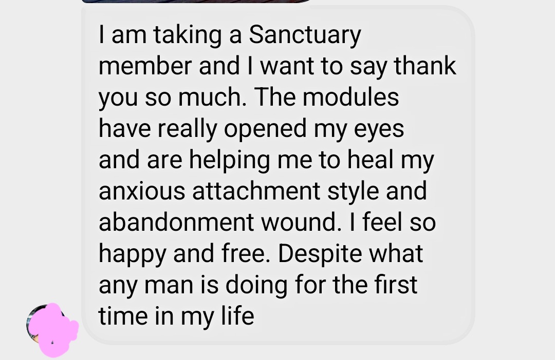 Inside The Sanctuary, we gently retrain your nervous system to feel safe with calm, to trust stability, and to become drawn to relationships rooted in mutual care and reciprocity.